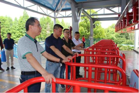 安全警钟长鸣不停,安全工作常抓不懈。为深入贯彻落实全国市场监管部门安全监管工作电视电话会议精神及总局领导指示要求,切实消除我市特种设备安全隐患,确保不发生系统性、区域性问题,进一步预防和减少特种设备事故,遏制重特大事故发生,6月14日,市质监局党组书记、局长刘伟带领市局特种设备监察科,联合湖南省特检院株洲分院,赶赴方特欢乐世界对其大型游乐设施开展节前安全隐患排查。